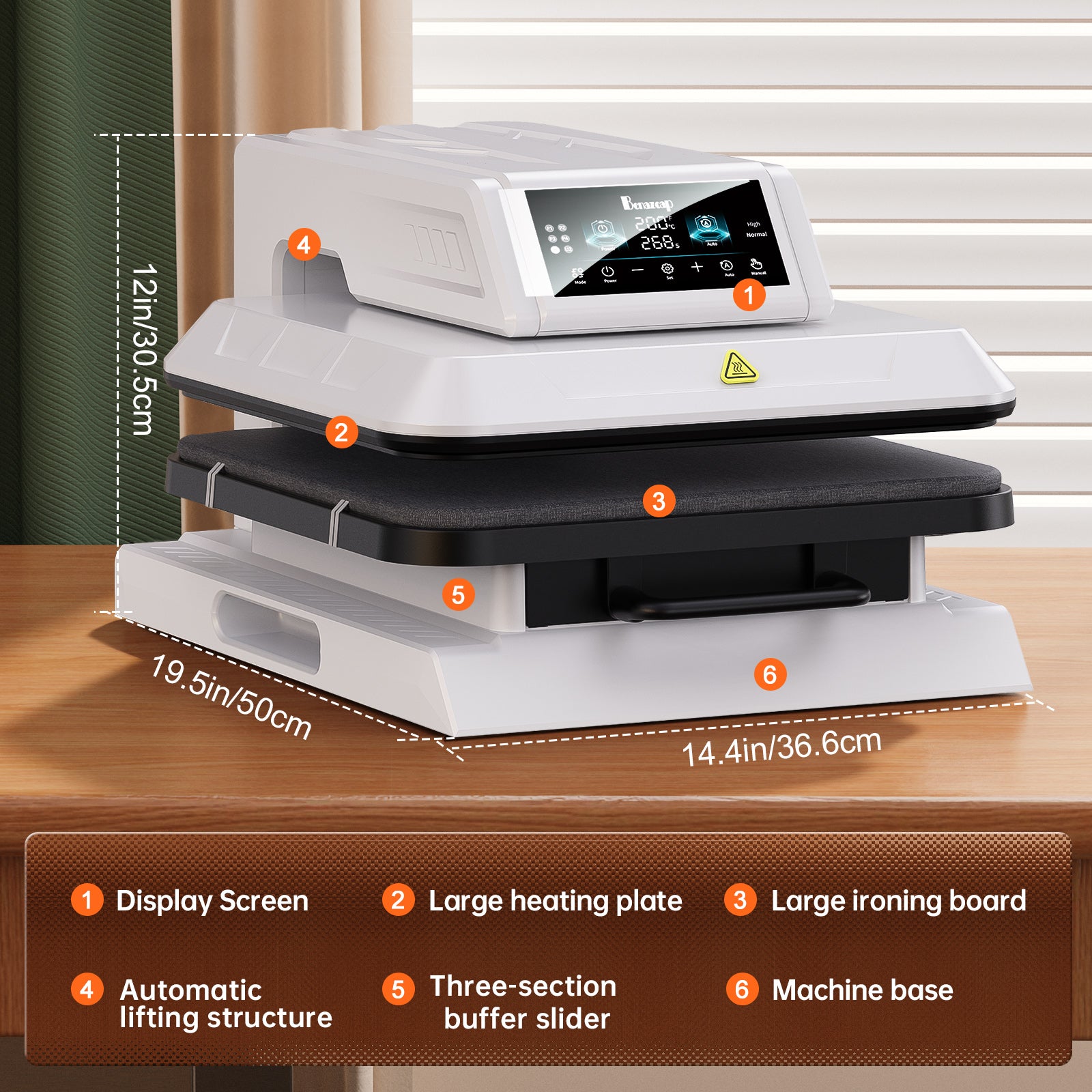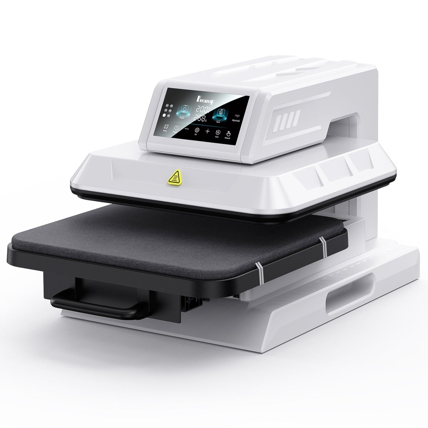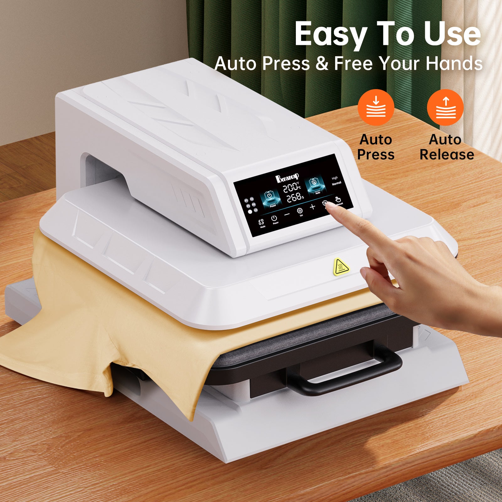 - ✨Smart Pressure Detection & Fully Automatic Heat Press✨ Our auto heat press machine simplifies pressure adjustment. After setting the temperature and time, the 15x15 inch heat press automatically detects the thickness of the item (up to 1 inch) and adjusts to the optimal pressure. This intelligent t-shirt heat press also auto-releases the item after pressing. You don't have to monitor the process constantly; instead, you can use this time to brew a cup of coffee or enjoy time with your pets.
